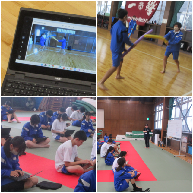 「読み勝て、出し勝て、気迫で勝て」をテーマに、しかけ技や応じ技を使いながら、試合形式で行いました。攻防の楽しさを実感しながら一生懸命取り組む姿が印象的でした。
