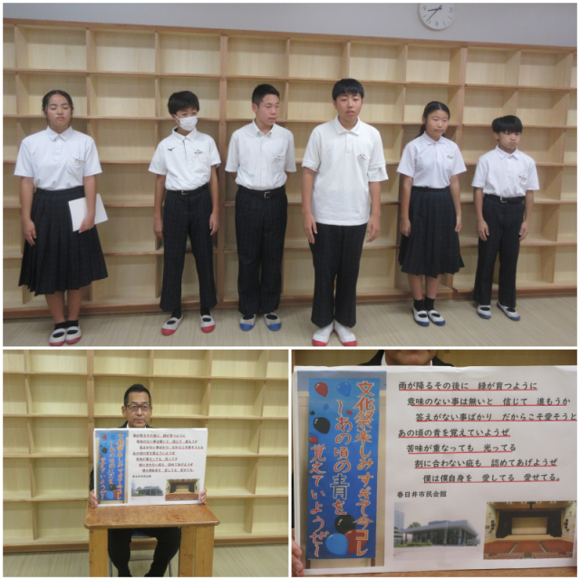 生徒指導担当の先生からは、市内で警察が関わる事案が増えていることについての注意がありました。①深夜徘徊のよる補導、②工事現場や空き家への不法侵入、③自転車の盗難や放置自転車の窃盗が増えており、法律に違反することもあり、大きなことになってしまうケースがあります。自分を大切に、仲間を大切にした生活に心がけてほしいと思います。