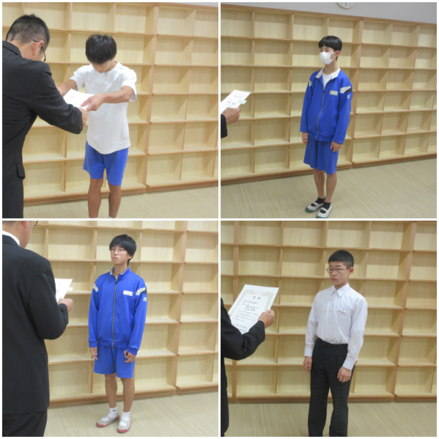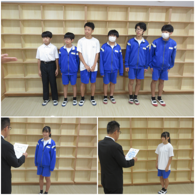 今朝のリモート集会では、後期の生徒会執行部・委員会・室長・評議員の認証式、表彰伝達、校長先生からのお話、生徒指導担当の先生からのお話がありました。