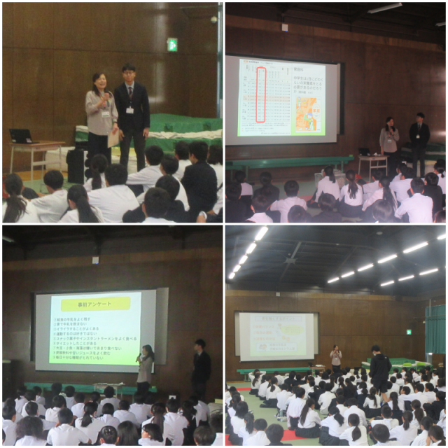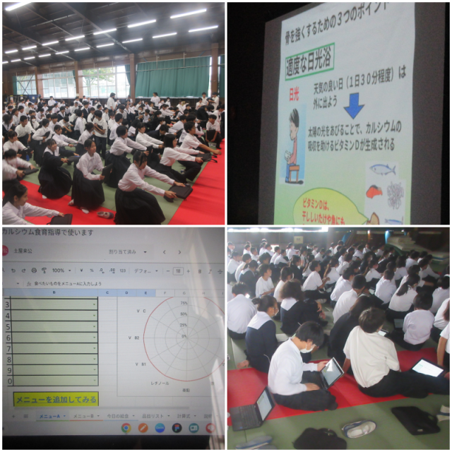 栄養教諭の先生に来ていただき、食育の集会を行いました。カルシウムの大切さについて学びました。自分の食生活や運動について考えることができました。