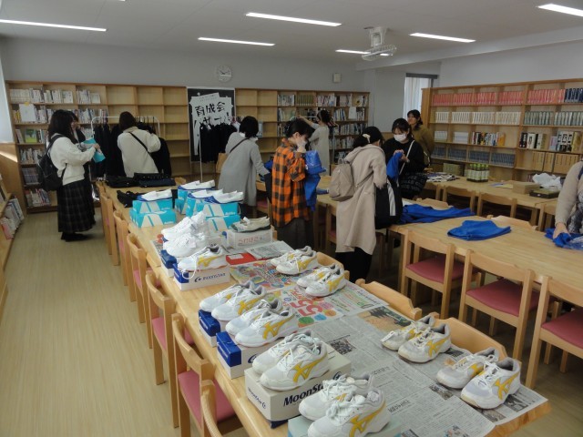 本日、10時からメディアルームにて育成会バザーが行われました。制服、ジャージ、カバン、靴などが出品されました。整理券を配布するほどの盛況ぶりで「来てよかった~!」という声を多数いただきました。バザーに関わった役員の方、参加してくださった保護者の方、そして出品してくださった方、ありがとうございました!