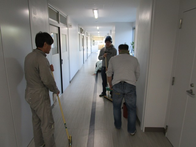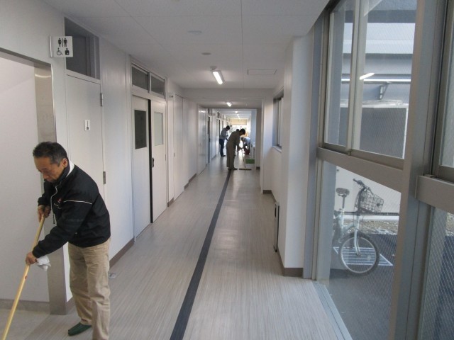 新しい床は汚れが落ちづらい箇所もあり、きれいにするには水拭きで力が必要です。ワイワイ楽しい雰囲気のおかげで、地味でしんどい作業もはかどりました。さすが、親父のパワー!廊下、階段床がピカピカになりました。ご協力くださった親父の会の会員の皆様、本当にありがとうございました!