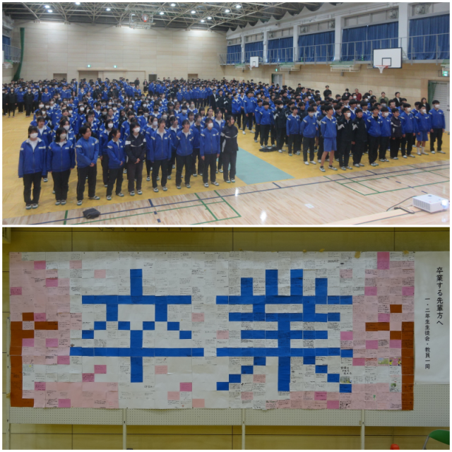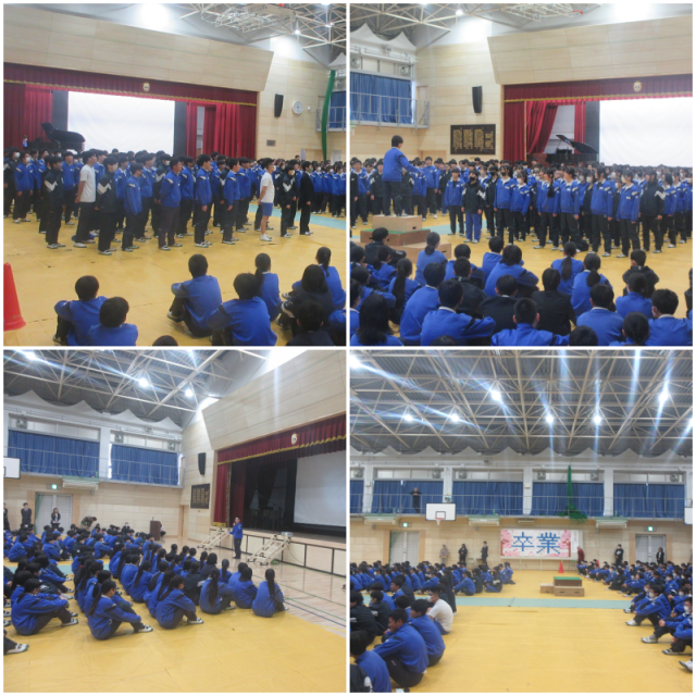 生徒会主催で卒業生を送る会がありました。3年間の思い出の劇、3年間の思い出のスライド、3年生による合唱、全校生徒による校歌の合唱がありました。笑顔いっぱい、涙いっぱいの素敵な送る会になりました。生徒会役員の皆さん、評議員の皆さん、素晴らしい企画をありがとうございました。3年生の皆さん、素敵な合唱をありがとうございました。全校での校歌の合唱は最高でした。