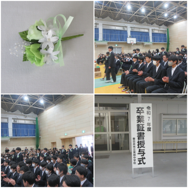卒業式では、在校生は「この地球のどこかで」、3年生は「友~旅立ちの時~」を気持ちを込めて歌いました。心温まる素敵な卒業式となりました。緑学年の皆さん、ご卒業、おめでとうございます。