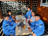 完成しました。どの班も上手にできました。自分たちで作ったバームクーヘンはとても美...