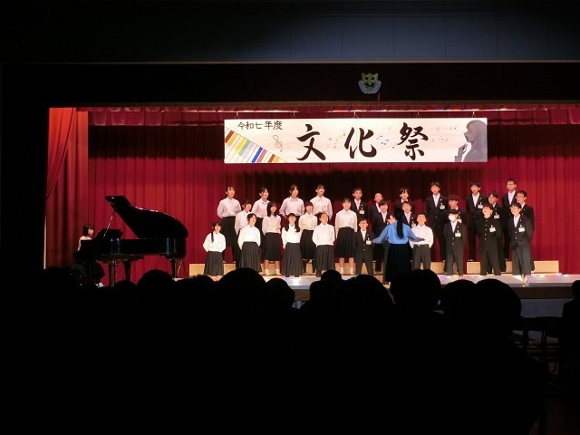 文化祭開催中 公開日 2025/10/30 更新日 2025/10/30 お知らせ 10月29日から31日は文化祭を開催しています。1年生は29日、2年生は30日、3年生は31日に合唱コンクールがあり、これまでの練習で培ったきたすべての力を1度きりの本番で発揮する姿を見せてくれています。武道場では、美術の作品の展示が行われており、それぞれの思いを込めた作品を鑑賞し、感想を交換し合う様子を見ることが出来ました。