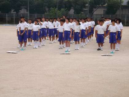 体育大会練習(緑学年) 公開日 2013/09/11 更新日 2013/09/11 各学年 9月10日、1年生の体育大会の練習の様子です。 この日は校歌・応援歌を歌ったり、大縄や個人種目の練習などをおこないました。 大縄跳びの練習は放課や体育の時間にもおこなっています。 クラスみんなで力を合わせておこなう大切な種目です。 体育大会までクラスみんなでがんばっていきましょう!
