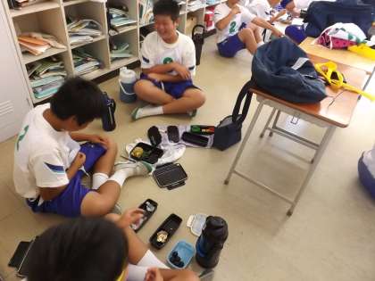 体育大会(昼食) 公開日 2013/09/24 更新日 2013/09/24 学校行事 昼食の様子です。 お弁当をみんなで輪になって食べていました。 午後の大縄跳びに向けて準備万端ですね。 体育大会当日、また予備日とお弁当を準備してくださった保護者の皆様、 ありがとうございました。
