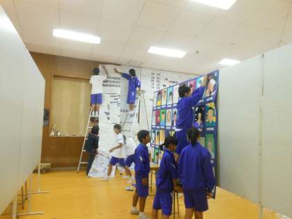 実行委員を中心に、ターポリンを引き、パネルを設置し、