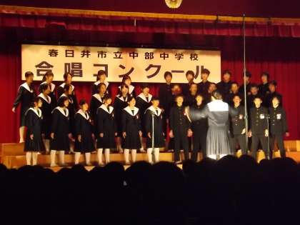 合唱コンクール(赤学年) その4 公開日 2013/10/25 更新日 2013/10/25 学校行事 クラス発表も終盤です。 7曲目 9組 「My Own Road 〜僕が創る明日〜」(写真下) 8曲目 2組 「自分らしく」(写真中) 9曲目 6組 「大地かけぬけて」(写真上) 最後の最後まで本当に聞く人の心に響く合唱ばかりでした。どのクラスも曲に思いをのせて、練習の成果を大いに発揮することができました。