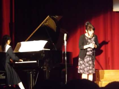 その後は音楽科の長江先生による「旅立ちの日に」です。中部中では卒業式に3年生が歌うのですが、独唱で歌われる「旅立ちの日に」はとても新鮮でした。また、長江先生の歌唱力・表現力に圧倒されました!