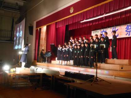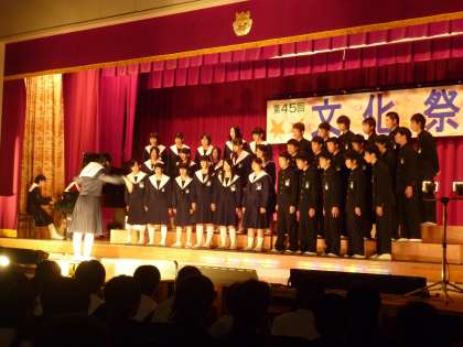 文化祭〜最優秀クラス発表〜 公開日 2013/10/28 更新日 2013/10/28 学校行事 英語弁論の次は合唱です。 先日各学年でおこなわれた合唱コンクールで最優秀賞になったクラスが、 学年を代表して、全校生徒の前で合唱を届けました。 どのクラスも学年の代表として素晴らしい合唱を披露してくれました。 上:1年1組『マイバラード』 中:2年3組『時を越えて』 下:3年7組『親知らず子知らず』