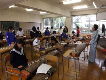 体験講座1(緑学年) 公開日 2013/10/31 更新日 2013/10/31 各学年 アップが遅くなってしまいすみません。 10月24日、1年生は講師の方に来ていただき、様々な体験講座をおこないました。 遅くなってしまいましたが、体験講座の様子を載せていきたいと思います。 上:アナウンス 中:絵手紙 下:琴