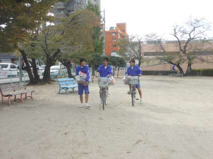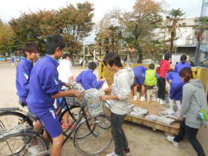 それぞれの地域で生徒たちは一生懸命回収をしていました。