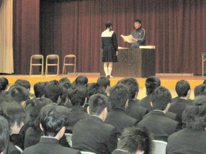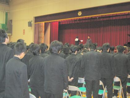 卒業式練習(3年生)① 公開日 2008/03/04 更新日 2008/03/04 各学年 3月4日(火)の3年生の卒業式練習の様子です。最初から最後まで通して練習しました。キャンドルも実際につけてみました。
