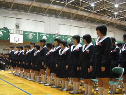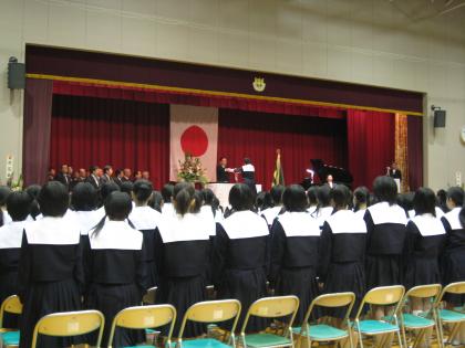 式の様子。 写真上:卒業証書授与 写真中:卒業証書授与 写真下:卒業記念品授与
