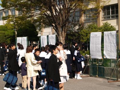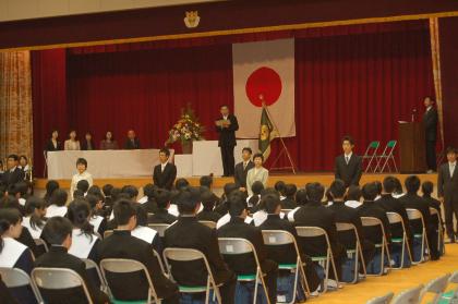 4月4日、桜満開の日に入学式が行われました。300名の新一年生は少し大きめの新しい制服を着て、緊張した面持ちで体育館に入りました。式の最中は真剣に先生方の話を聞いていました。