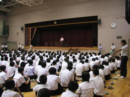一学期終業式 公開日 2008/07/18 更新日 2008/07/18 学校行事 7月18日、一学期の終業式です。 全員が静かに話を聞くことができ、とてもすばらしかったと思います。明日から夏休みですが、しっかりと計画を立てて有意義な夏休みにしましょう。