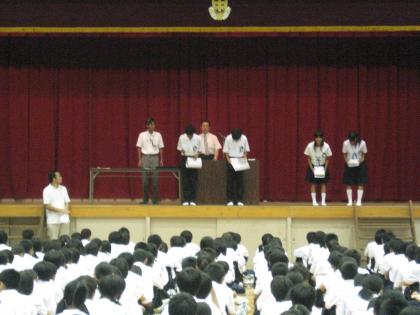8月25日の出校日で表彰伝達がありました。