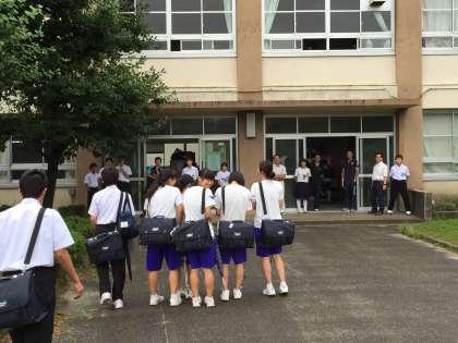 生徒会でのあいさつ運動を3年生も頑張っていました。朝外に出て見ると、昇降口で並んでみんなを待っていました。あいさつ運動を盛り上げていました。