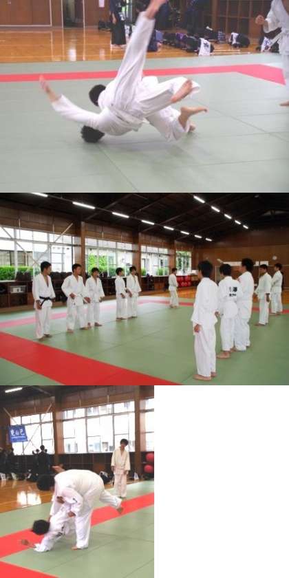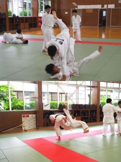 柔道部では、迫力ある投げの練習と受け身の練習を見せてもらいました。随分上手だなあと感心していました。