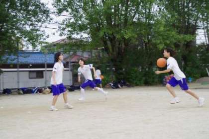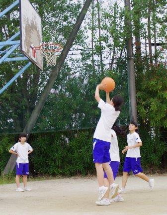 夏の大会近づく15 公開日 2015/07/09 更新日 2015/07/09 部活動 バスケットボール女子が外で練習をやっていました。あいにく雨で他のコートが使用できず、それでも工夫して練習をしていました。