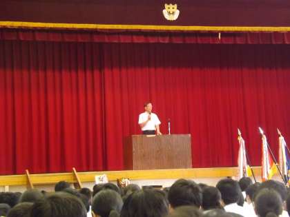 7月16日、台風を避けるために予定よりも1日早く終業式を行いました。