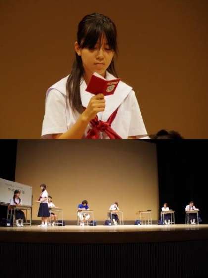 「七人の部長」という公演でした。あらすじは、「私立ヤツシマ女子中学校の生徒会室、放課後。部活動予算会議に集まった生徒会長を含む7人の部長たち。淡々と終わるかと思われた会議だったが、予算に納得できない演劇部部長の発言から、思わぬ方向へ進んでいき・・・。(演劇発表会プログラムより)」