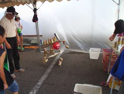 小さな子どもたちが、楽しそうに夏のお祭りの思い出をつくっていました。個人的には「的あて」が面白く、ボールを蹴ってカンを積んだ的にあてるゲームです。見ていても、とってもみんな楽しそうでした。射的では一等をゲットした子どもがいました。一等の景品をうれしそうにもらって行く姿は、「納涼祭り」にふさわしい光景でした。