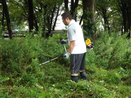 早朝には激しく降っていた雨も開始時刻前にはすっかり上がり、予定通りおやじの会のみなさんによる第2回環境整備が行われました。この休み中に、広い校地のあちこちで雑草が伸びていましたが、3時間半の作業できれいに刈っていただきました。おやじの会のみなさんのおかげで、2学期もさわやかにスタートできます。貴重なお休みにもかかわらず、環境整備をしていただき、ありがとうございました。