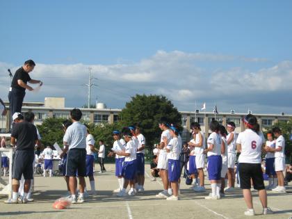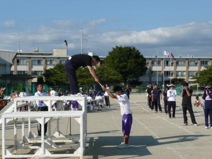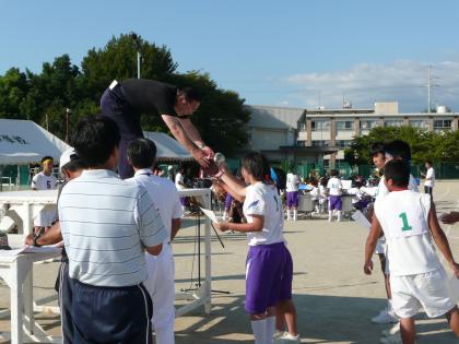 体育大会(表彰式) 公開日 2008/09/22 更新日 2008/09/22 学校行事 9月22日、体育大会の表彰式の様子です。 どのクラスもよくがんばりました。 今回は走り幅跳びで新記録賞が出ました。 この種目に関しての新記録は34年ぶりになります。 1年 総合1位6組 2位3組 3位5,7組 2年 総合1位1,9組 3位6組 3年 総合1位2組 2位5組 3位4組 新記録賞 1年走り幅跳び 5m29
