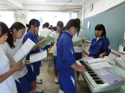 合唱練習開始 公開日 2015/09/24 更新日 2015/09/24 学校行事 体育大会を終えて、次に来たる文化祭のメインイベント、 合唱コンクールに向けた合唱練習が本格的にスタートしました。 各クラスでは意気込みを書いたり、パートごとに分かれての 練習をしたりと、次第に合唱コンに意識を向けだしています。 早くも当日の合唱が楽しみですね!