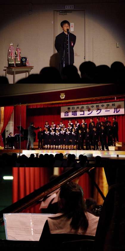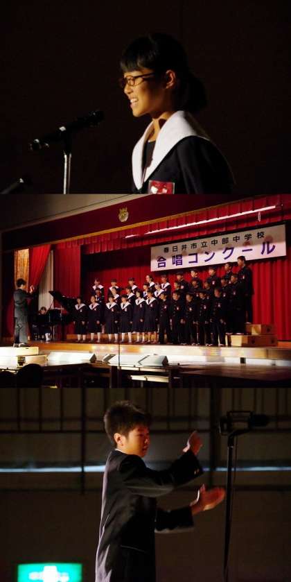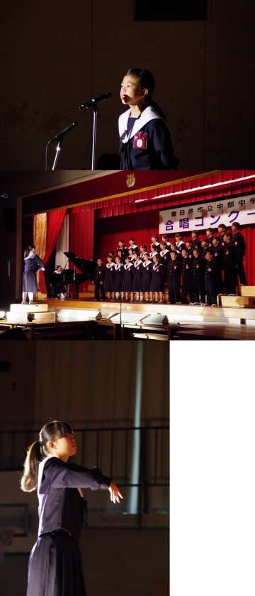 文化祭 合唱コンクール1年生その1 公開日 2015/10/22 更新日 2015/10/22 学校行事 1年生合唱コンクール発表1番から3番 1年 3組 「let's search for tomorrow」 1年10組 「この星に生まれて」 1年 4組 「With You smile]
