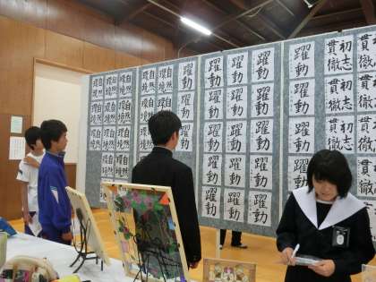展示鑑賞 公開日 2015/10/22 更新日 2015/10/22 学校行事 文化祭では、生徒の作品や、一般の方の作品を武道場に展示しております。文化祭2日目にもご覧いただけますので、ぜひお越しください。