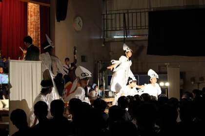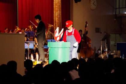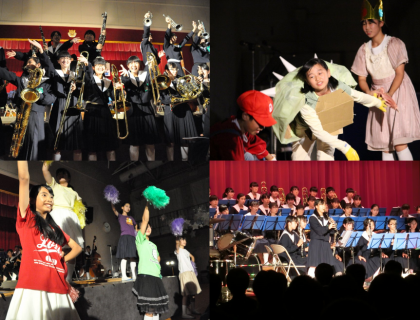 文化祭 2日目(吹奏楽部 その2) 公開日 2015/10/23 更新日 2015/10/23 学校行事 ゲームのキャラクターに扮した生徒の動きに合わせた演奏や、元気いっぱいの踊り、観客を巻き込んでいくパフォーマンスと、最後まで楽しみの尽きない発表でした。
