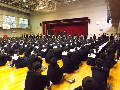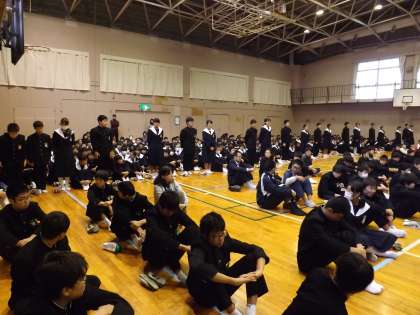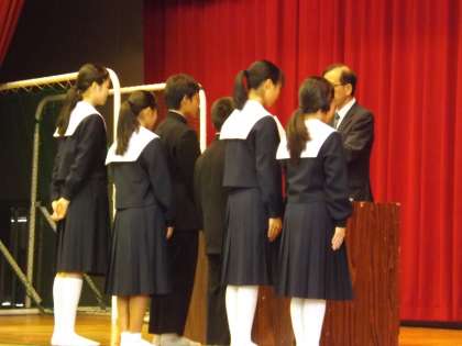 本日から後期が始まります。集会では、新たに選出された生徒会や学級委員、評議員の認証が行われました。学校やクラスをよりよくしていくためにみんなで力を合わせて後期も頑張っていきましょう。