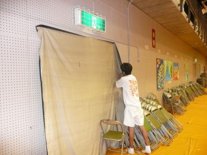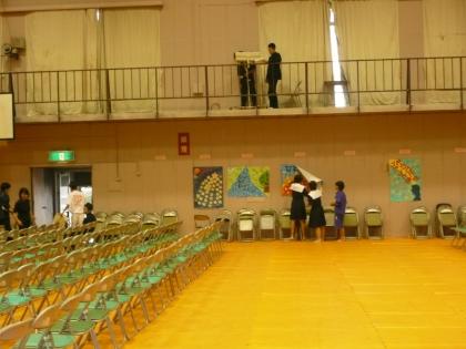 文化祭準備 公開日 2008/10/24 更新日 2008/10/24 学校行事 10月24日、文化祭の準備を行いました。 張り出し舞台、暗幕、スポットなどが準備され、 各クラスの合唱コンクールのB紙も張られています。 たくさんの生徒が準備をがんばってくれました。