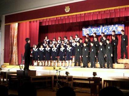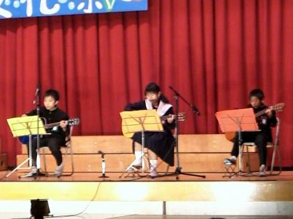 ステージ発表の写真です。(上:英語弁論、中:ギター部、下:最優秀クラス合唱)