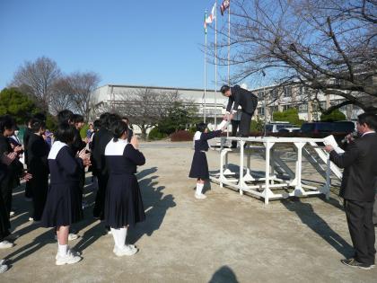 3月2日の集会で,表彰伝達と皆勤賞の発表を行いました。