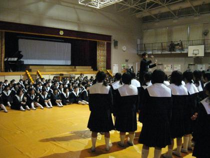1、2年生から3年生へ合唱のプレゼントです。