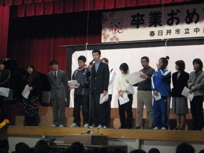 まずは3年生を担当した先生達による、合唱のプレゼントです。