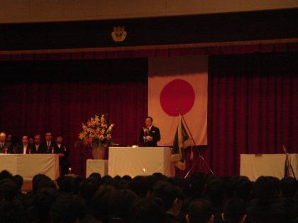 卒業式 〜式辞〜 公開日 2009/03/10 更新日 2009/03/09 学校行事 校長先生からの最後のメッセージでもある式辞が行われます。 校長先生は卒業生に向けて、1つだけお願いをされました。 それは、「共存の精神を大切にしてほしい」ということ。 これから新たなステージに旅立つ卒業生に向けて、とても暖かなメッセージでした。
