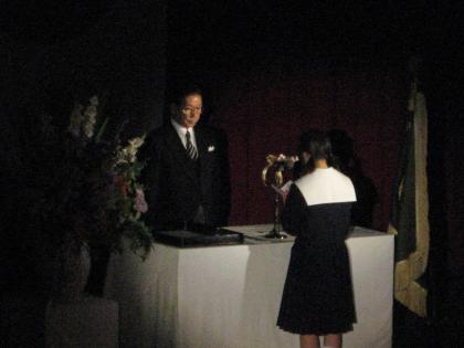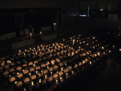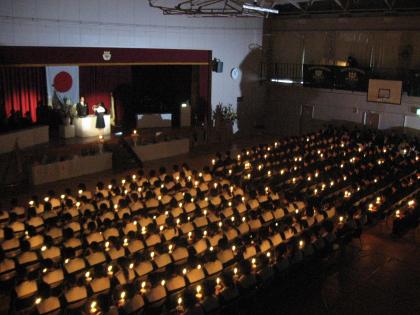 答辞が終盤に差し迫った頃、中部中伝統のキャンドルが体育館を照らします。 別れの時は確実に近づいています。