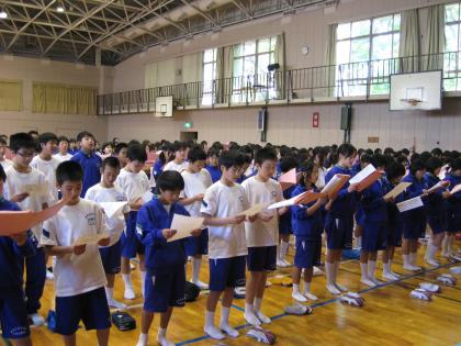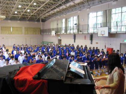 校歌練習 公開日 2009/05/01 更新日 2009/05/01 各学年 4月30日、1年生が校歌の練習を行いました。 最初は声の出ていなかった生徒達でしたが、 最後には、大きくそしてきれいな歌声になり、 どの先生も感動していました。