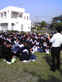 5月12日,3年生が修学旅行に出発しました。 下は出発式の様子です。