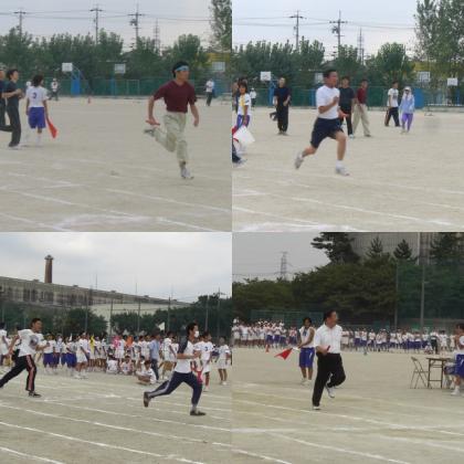 男子選抜リレーと一緒に男の先生も走りました。アンカーは校長先生でした!