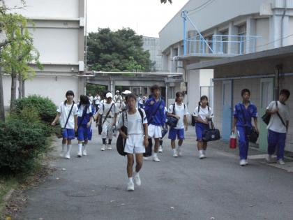 下校風景 公開日 2007/09/27 更新日 2007/09/27 部活動 下校風景です。 1・2年生は合同練習会や文化祭に向けて部活動に一生懸命取り組んでいます。 今日は部活動の卒業アルバム写真撮影があったので、3年生も1・2年生と一緒に活動していました。