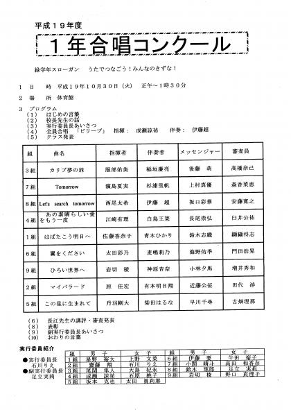1年生合唱コンクールプログラムを配布しました。