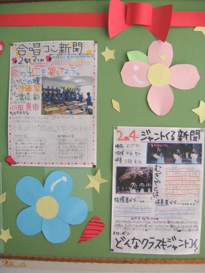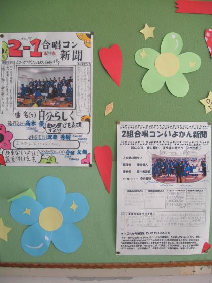 2年生も合唱コン新聞が脱靴室に掲示されました!