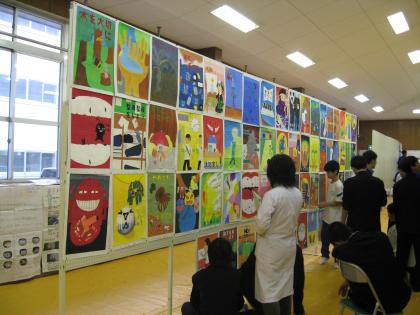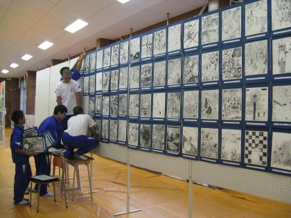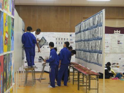 10月26日(金)に文化祭の準備と舞台リハーサルが行われました。 写真:展示の準備の様子。